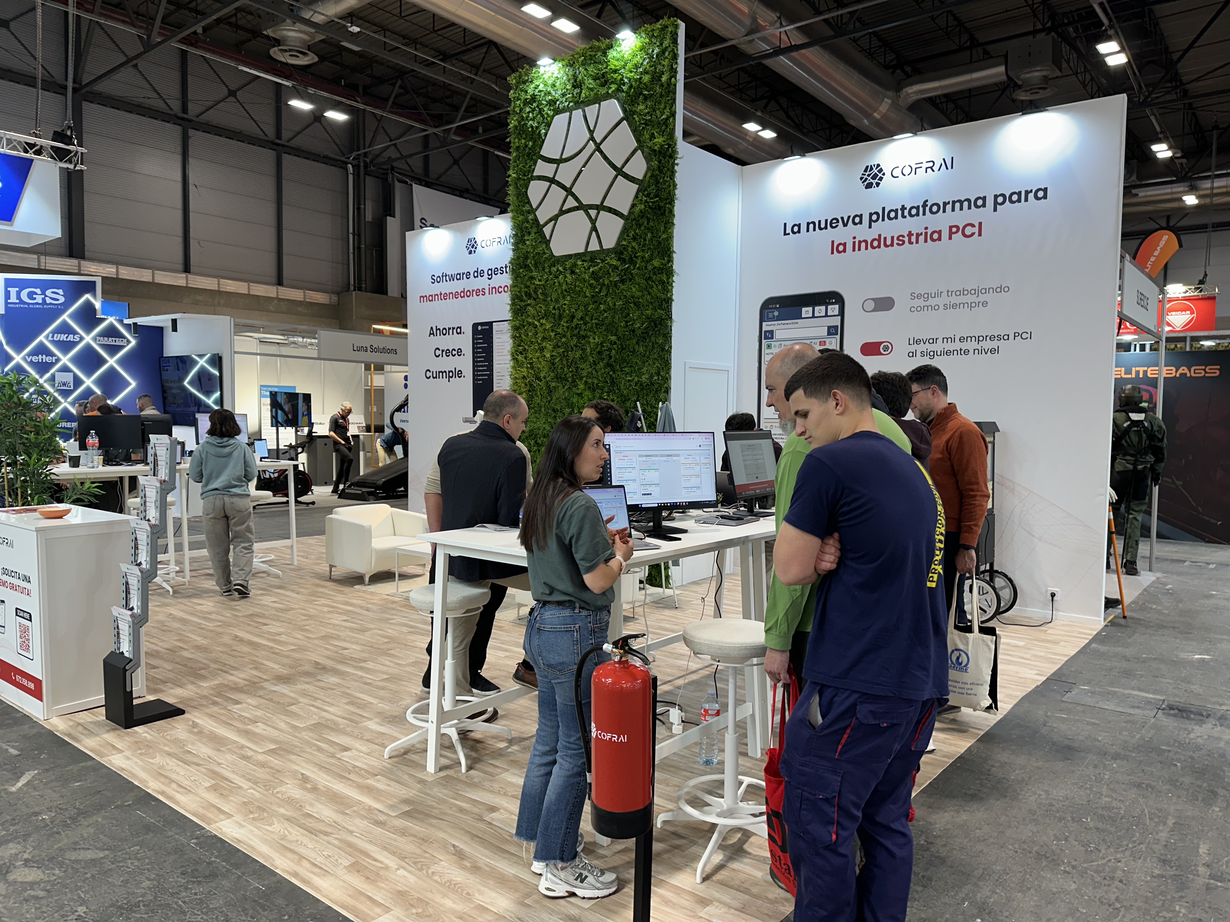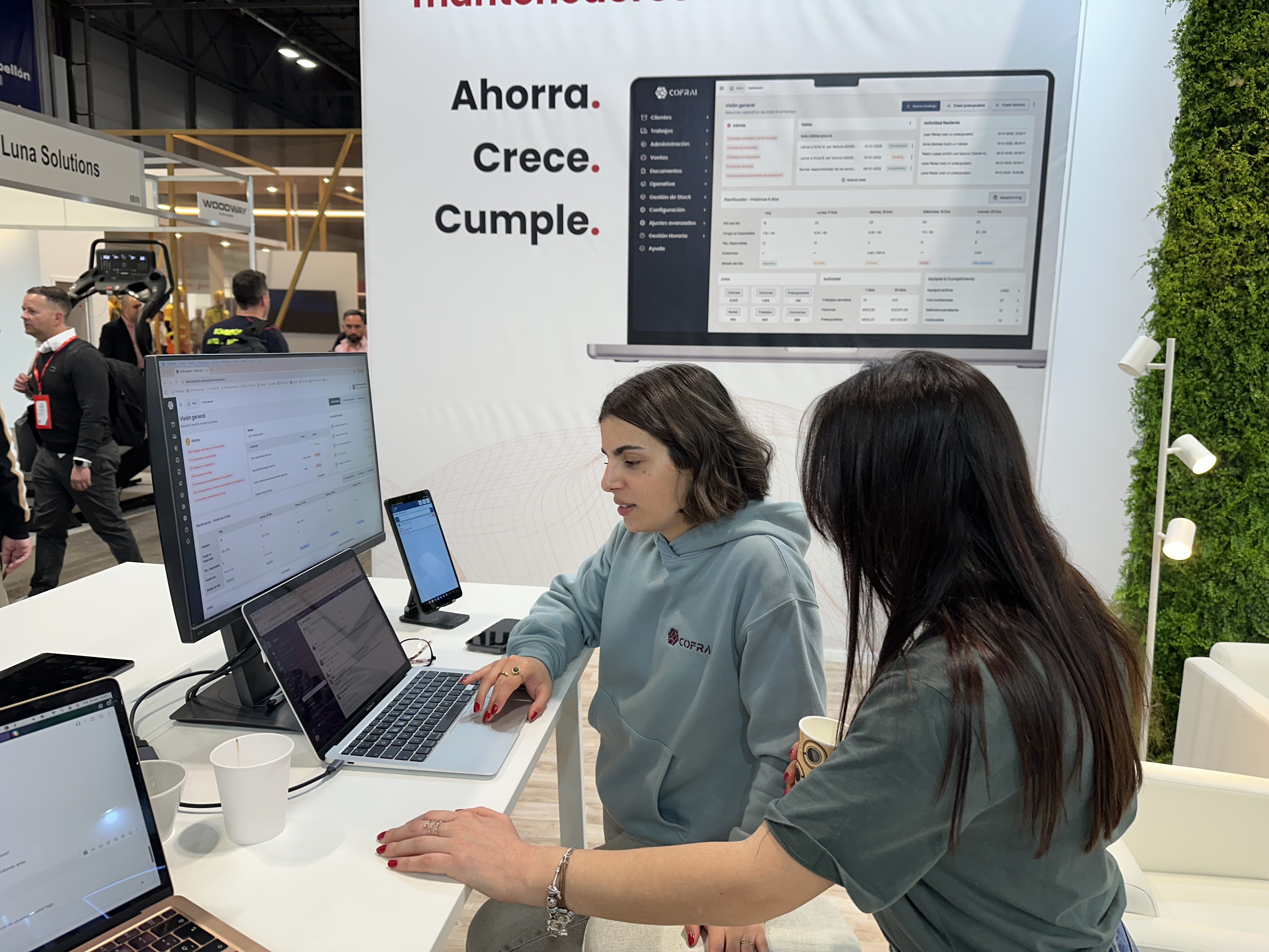 Por su parte, Rafael Gorjao, Co-fundador de Cofrai, destacó el interés que despertaron las demostraciones del software: “Muchos mantenedores se acercaron a probar la plataforma directamente en el stand. Ver el software funcionando en el ordenador y en el móvil permite entender rápidamente cómo puede mejorar la organización del trabajo y la gestión de los servicios de mantenimiento.”
